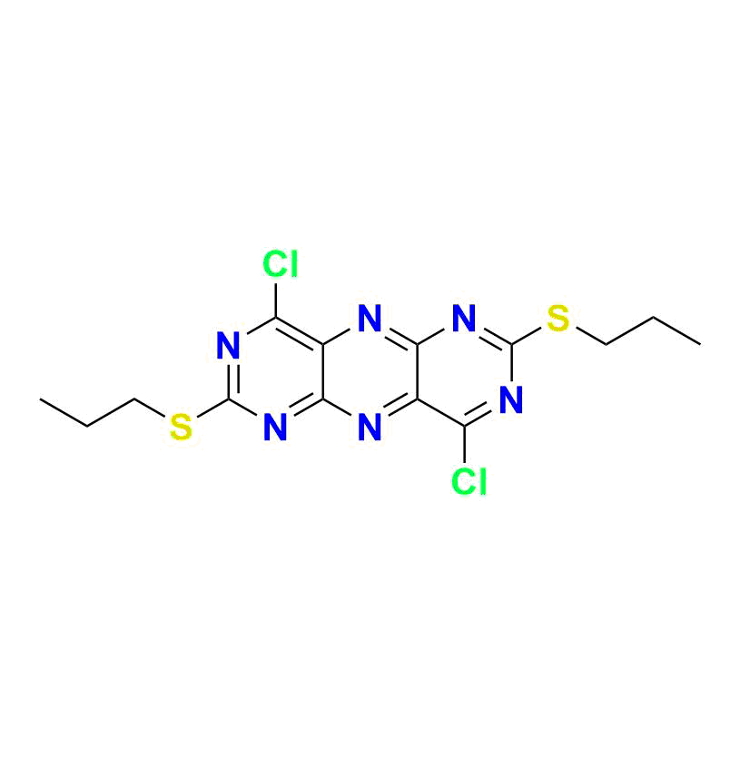 | Chemical name | 4, 9-dichloro-2, 7-bis(propylthio)pyrimido[4, 5-g]pteridine |