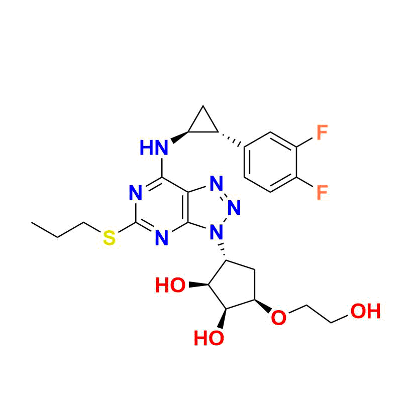 | Chemical name | (1S, 2S, 3R, 5R)-3-(7-(((1S, 2R)-2-(3, 4-difluorophenyl)cyclopropyl)amino)-5-(propylthio)-3H-[1, 2, 3]triazolo[4, 5-d]pyrimidin-3-yl)-5-(2-hydroxyethoxy)cyclopentane-1, 2-diol |