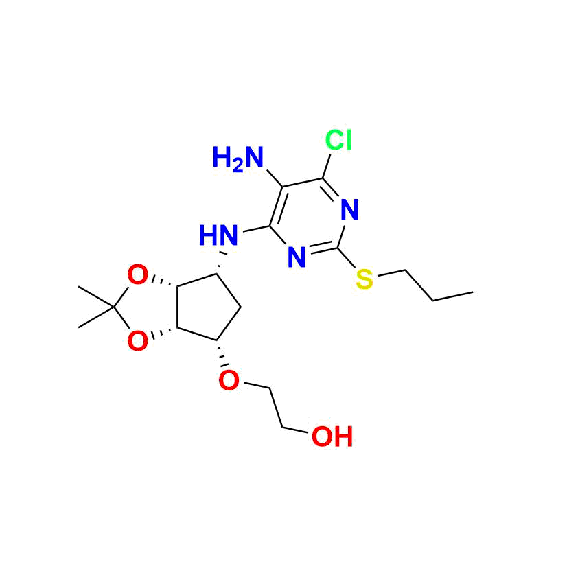 | Chemical name | 2-(((3aS, 4S, 6R, 6aR)-6-((5-amino-6-chloro-2-(propylthio)pyrimidin-4-yl)amino)-2, 2-dimethyltetrahydro-4H-cyclopenta[d][1, 3]dioxol-4-yl)oxy)ethan-1-ol |