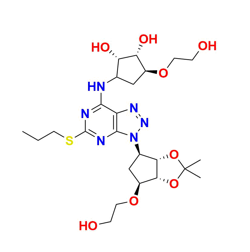 | Chemical name | (1S, 2S, 3S)-3-(2-hydroxyethoxy)-5-((3-((3aS, 4R, 6S, 6aR)-6-(2-hydroxyethoxy)-2, 2-dimethyltetrahydro-4H-cyclopenta[d][1, 3]dioxol-4-yl)-5-(propylthio)-3H-[1, 2, 3]triazolo[4, 5-d]pyrimidin-7-yl)amino)cyclopentane-1, 2-diol |