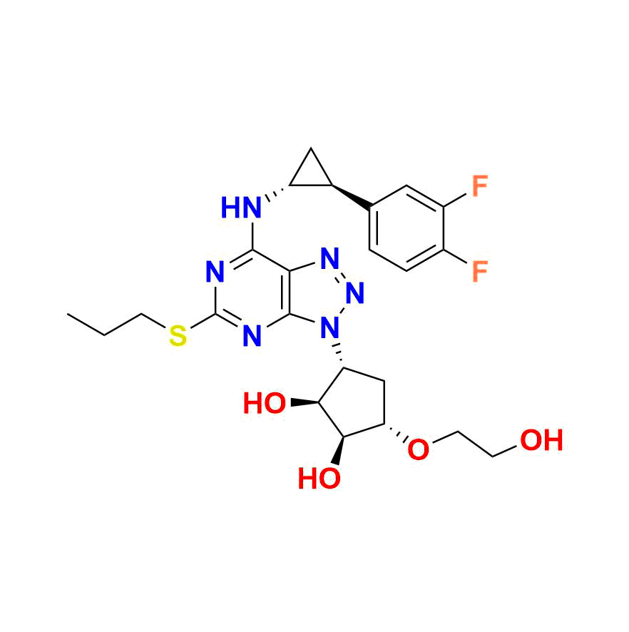 | Chemical name | (1S, 2S, 3R, 5S)-3-(7-(((1R, 2S)-2-(3, 4-difluorophenyl)cyclopropyl)amino)-5-(propylthio)-3H-[1, 2, 3]triazolo[4, 5-d]pyrimidin-3-yl)-5-(2-hydroxyethoxy)cyclopentane-1, 2-diol |