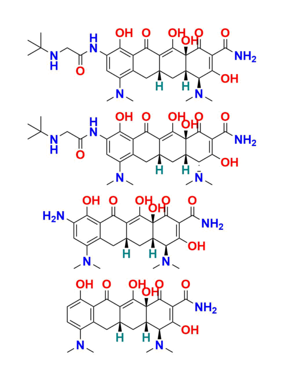 | Chemical name | (4R, 4aS, 5aR, 12aS)-9-(2-(tert-butylamino)acetamido)-4, 7-bis(dimethylamino)-3, 10, 12, 12a-tetrahydroxy-1, 11-dioxo-1, 4, 4a, 5, 5a, 6, 11, 12a-octahydrotetracene-2-carboxamide–(4S, 4aS, 5aR, 12aS)-4, 7-bis(dimethylamino)-3, 10, 12, 12a-tetrahydroxy-1, 11-dioxo-1, 4, 4a, 5, 5a, 6, 11, 12a-octahydrotetracene-2-carboxamide–(4S, 4aS, 5aR, 12aS)-9-(2-(tert-butylamino)acetamido)-4, 7-bis(dimethylamino)-3, 10, 12, 12a-tetrahydroxy-1, 11-dioxo-1, 4, 4a, 5, 5a, 6, 11, 12a-octahydrotetracene-2-carboxamide–(4S, 4aS, 5aR, 12aS)-9-amino-4, 7-bis(dimethylamino)-3, 10, 12, 12a-tetrahydroxy-1, 11-dioxo-1, 4, 4a, 5, 5a, 6, 11, 12a-octahydrotetracene-2-carboxamide (1/1/1/1) |