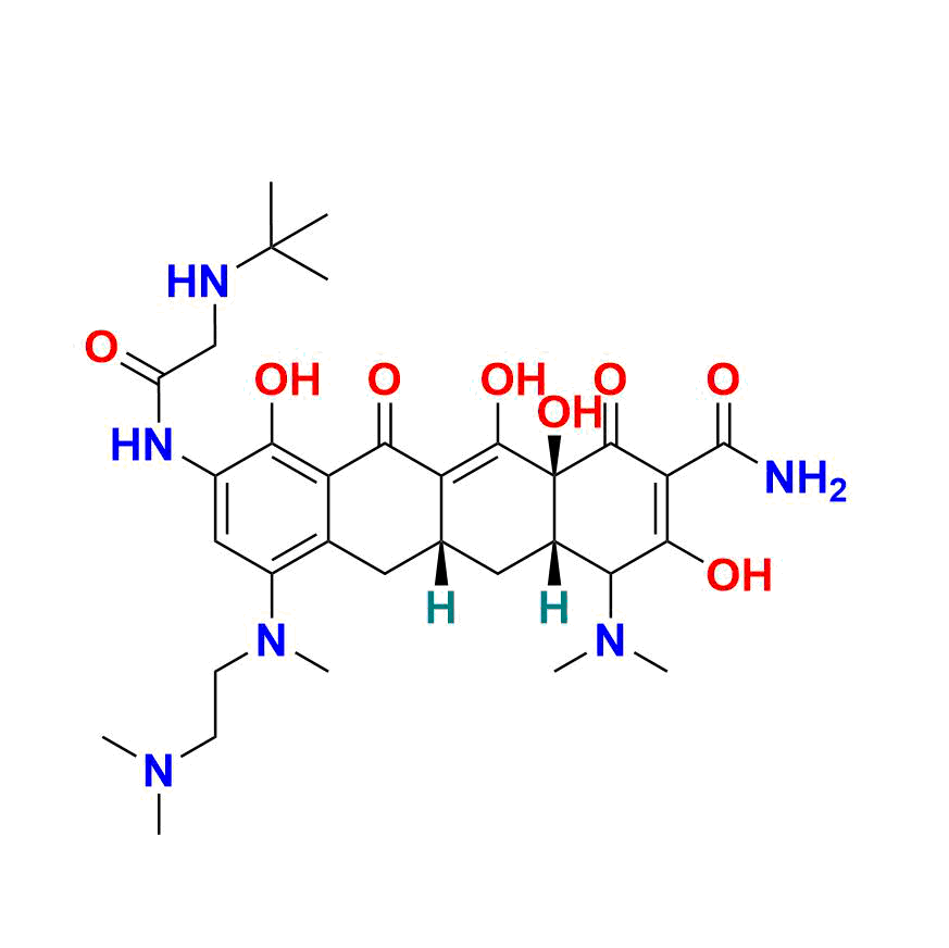 | Chemical name | (4aS, 5aR, 12aS)-9-(2-(tert-butylamino)acetamido)-4-(dimethylamino)-7-((2-(dimethylamino)ethyl)(methyl)amino)-3, 10, 12, 12a-tetrahydroxy-1, 11-dioxo-1, 4, 4a, 5, 5a, 6, 11, 12a-octahydrotetracene-2-carboxamide |