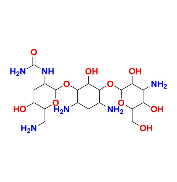 | Chemical name | 1-(6-(aminomethyl)-2-((4, 6-diamino-3-((4-amino-3, 5-dihydroxy-6-(hydroxymethyl)tetrahydro-2H-pyran-2-yl)oxy)-2-hydroxycyclohexyl)oxy)-5-hydroxytetrahydro-2H-pyran-3-yl)urea |