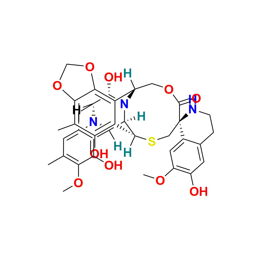 Trabectedin Impurity 6 can be used as a reference standard, with possible traceability to pharmacopeial standards such as USP or EP, based on feasibility. AquigenBio products are strictly for analytical purposes and is not intended for human use.