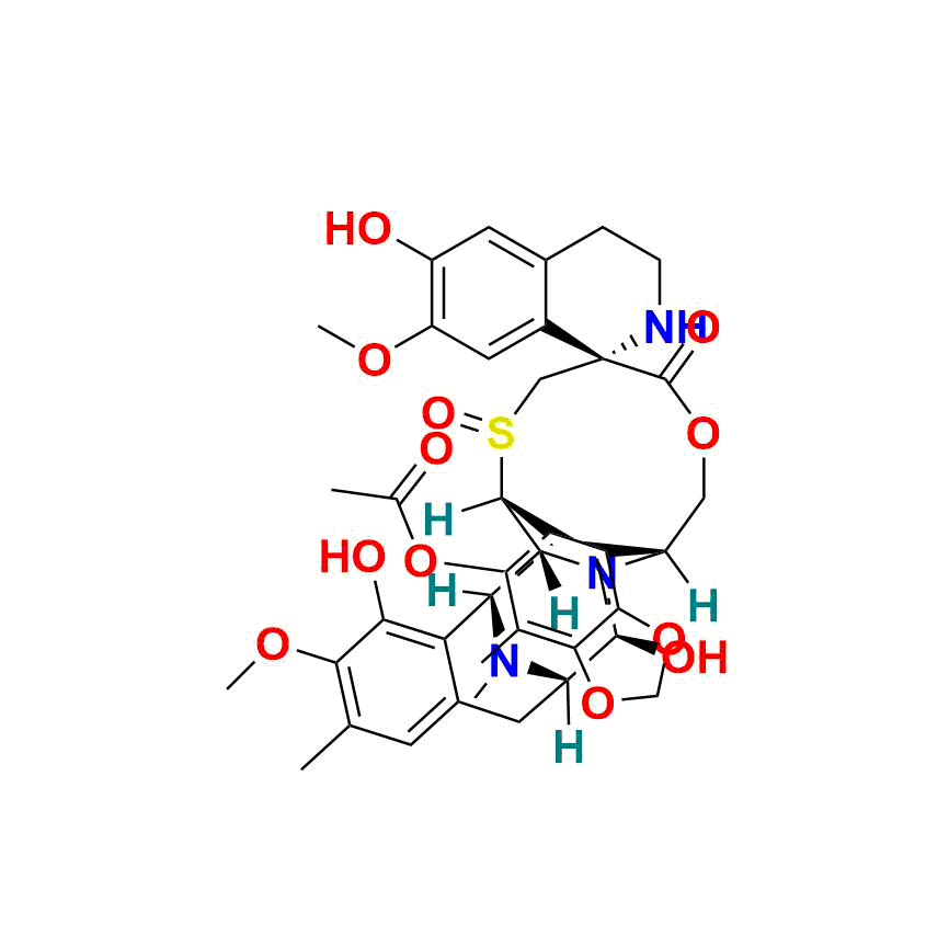 Trabectedin Impurity 7 can be used as a reference standard, with possible traceability to pharmacopeial standards such as USP or EP, based on feasibility. AquigenBio products are strictly for analytical purposes and is not intended for human use.