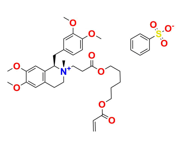 | Chemical name | (1R,2S)-2-(3-((5-(acryloyloxy)pentyl)oxy)-3-oxopropyl)-1-(3,4-dimethoxybenzyl)-6,7-dimethoxy-2-methyl-1,2,3,4-tetrahydroisoquinolin-2-ium benzenesulfonate |