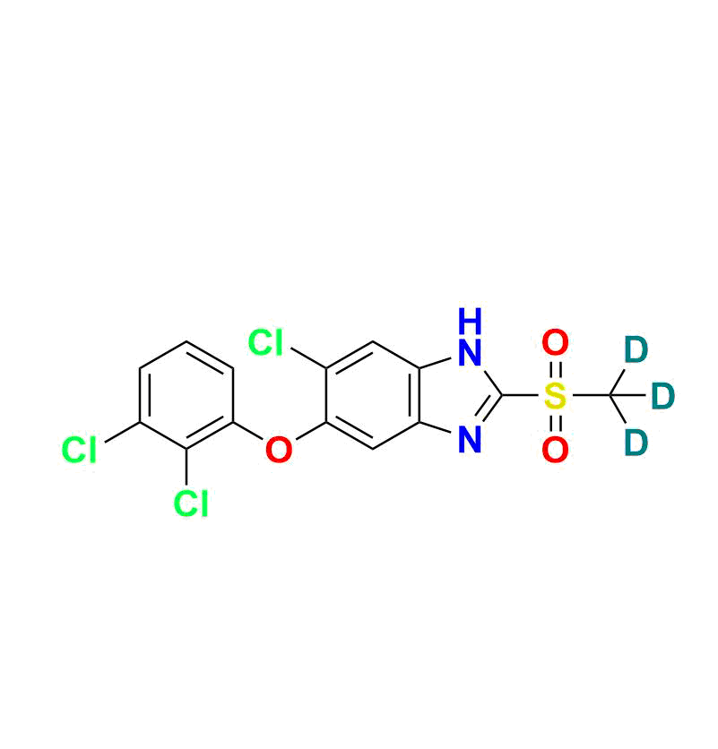Triclabendazole Sulfone-D3 can be used as a reference standard, with possible traceability to pharmacopeial standards such as USP or EP, based on feasibility. AquigenBio products are strictly for analytical purposes and is not intended for human use.