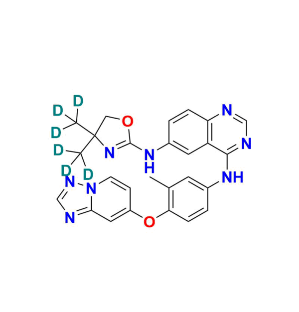 Tucatinib D6 is a high-quality reference standard supplied with comprehensive characterization data, ensuring compliance with regulatory guidelines. This product is essential for analytical method development, method validation (AMV), quality control (QC) applications, and plays a crucial role in Abbreviated New Drug Applications (ANDA).