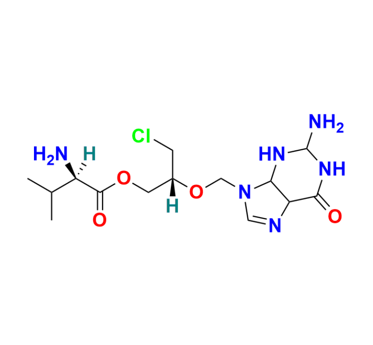 | Chemical Name: | (2R)-(2R)-2-((2-amino-6-oxo-3,4,5,6-tetrahydro-1H-purin-9(2H)-yl)methoxy)-3-chloropropyl 2-amino-3-methylbutanoate |