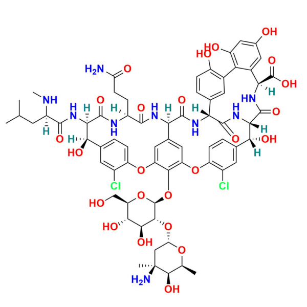 Vancomycin EP Impurity F is a high-quality reference standard supplied with comprehensive characterization data, ensuring compliance with regulatory guidelines. This product is essential for analytical method development, method validation (AMV), quality control (QC) applications, and plays a crucial role in Abbreviated New Drug Applications (ANDA).