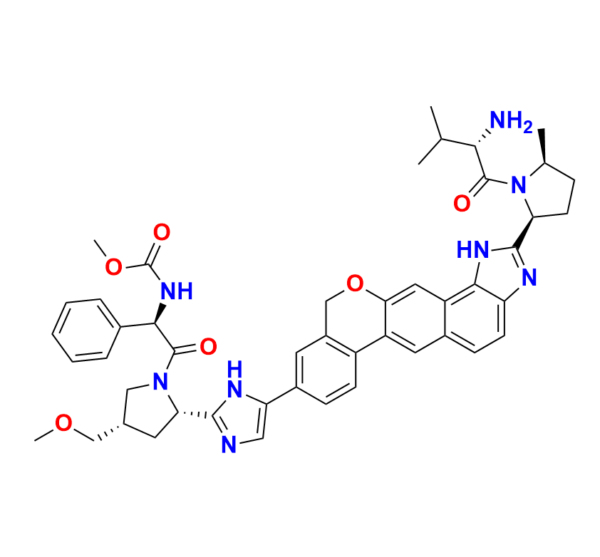 | Chemical Name: | methyl ((R)-2-((2S,4S)-2-(5-(2-((2S,5S)-1-((S)-2-amino-3-methylbutanoyl)-5-methylpyrrolidin-2-yl)-1,11-dihydroisochromeno[4',3':6,7]naphtho[1,2-d]imidazol-9-yl)-1H-imidazol-2-yl)-4-(methoxymethyl)pyrrolidin-1-yl)-2-oxo-1-phenylethyl)carbamate |