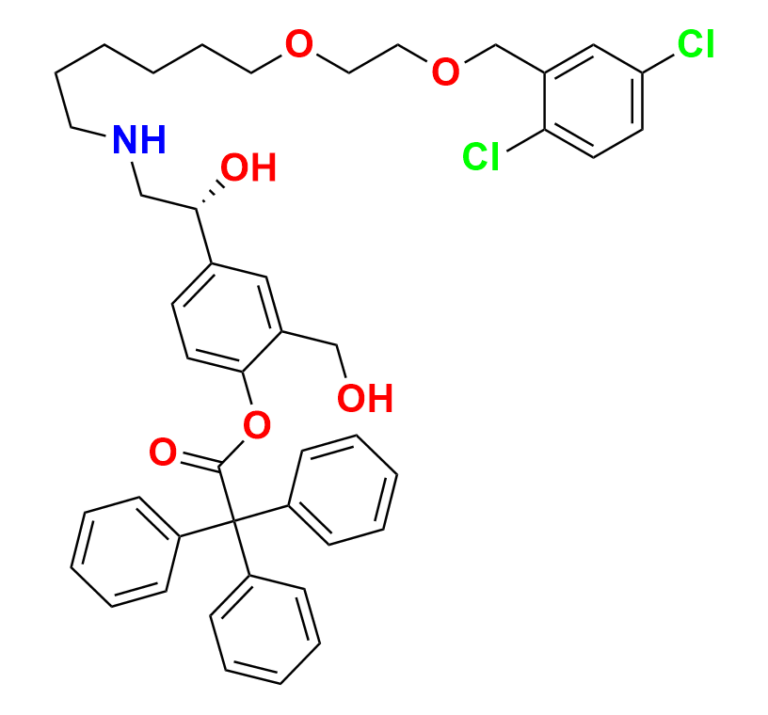 | Chemical Name | (R)-4-(2-((6-(2-((2,5-dichlorobenzyl)oxy)ethoxy)hexyl)amino)-1-hydroxyethyl)-2-(hydroxymethyl)phenyl 2,2,2-triphenylacetate |
