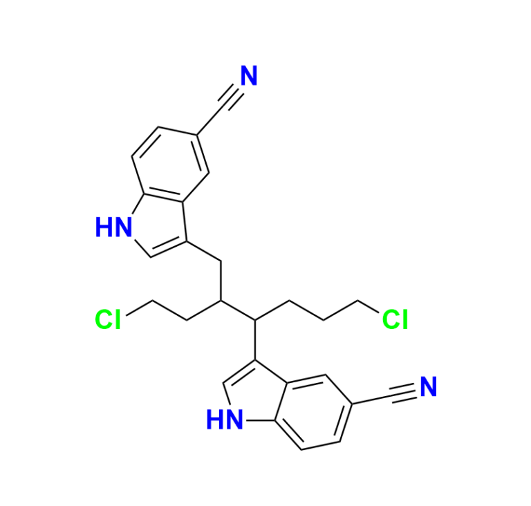 | Chemical Name | 3,3'-(6-chloro-2-(2-chloroethyl)hexane-1,3-diyl)bis(1H-indole-5-carbonitrile) |
