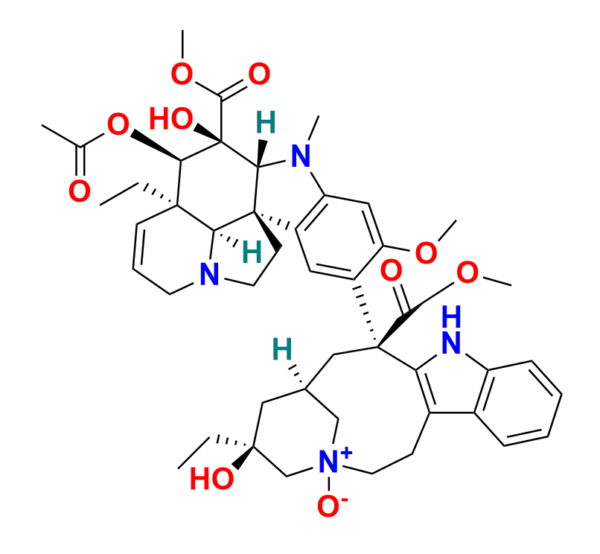 | Chemical Name: | (5S,7R,9S)-9-((3aR,3a1R,4R,5S,5aR,10bR)-4-acetoxy-3a-ethyl-5-hydroxy-8-methoxy-5-(methoxycarbonyl)-6-methyl-3a,3a1,4,5,5a,6,11,12-octahydro-1H-indolizino[8,1-cd]carbazol-9-yl)-5-ethyl-5-hydroxy-9-(methoxycarbonyl)-1,2,3,4,5,6,7,8,9,10-decahydro-3,7-methano[1]azacycloundecino[5,4-b]indole 3-oxide |