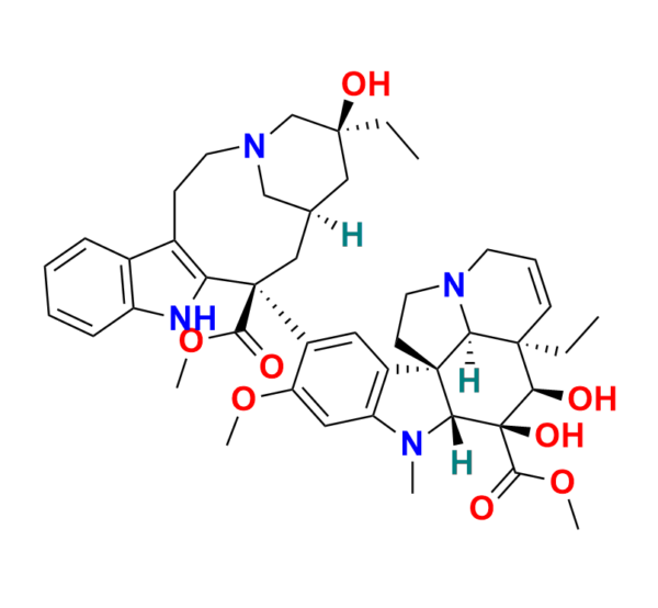 | Chemical Name: | (3aR,3a1R,4R,5S,5aR,10bR)-methyl 3a-ethyl-9-((5S,7R,9S)-5-ethyl-5-hydroxy-9-(methoxycarbonyl)-2,4,5,6,7,8,9,10-octahydro-1H-3,7-methano[1]azacycloundecino[5,4-b]indol-9-yl)-4,5-dihydroxy-8-methoxy-6-methyl-3a,3a1,4,5,5a,6,11,12-octahydro-1H-indolizino[8,1-cd]carbazole-5-carboxylate |