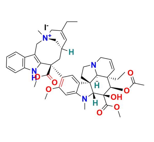 | Chemical Name: | (2S,6R,8S)-8-((3aR,3a1R,4R,5S,5aR,10bR)-4-acetoxy-3a-ethyl-5-hydroxy-8-methoxy-5-(methoxycarbonyl)-6-methyl-3a,3a1,4,5,5a,6,11,12-octahydro-1H-indolizino[8,1-cd]carbazol-9-yl)-4-ethyl-8-(methoxycarbonyl)-2-methyl-2,3,6,7,8,9-hexahydro-1H-2,6-methanoazecino[4,3-b]indol-2-ium iodide |