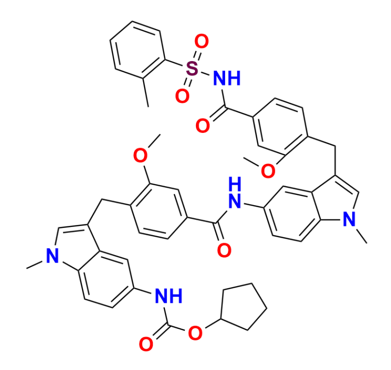 | Chemical Name | cyclopentyl (3-(2-methoxy-4-((3-(2-methoxy-4-((o-tolylsulfonyl)carbamoyl)benzyl)-1-methyl-1H-indol-5-yl)carbamoyl)benzyl)-1-methyl-1H-indol-5-yl)carbamate |