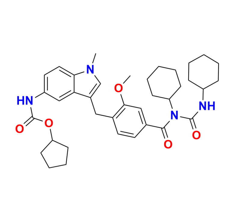 | Chemical Name | cyclopentyl (3-(4-(cyclohexyl(cyclohexylcarbamoyl)carbamoyl)-2-methoxybenzyl)-1-methyl-1H-indol-5-yl)carbamate |