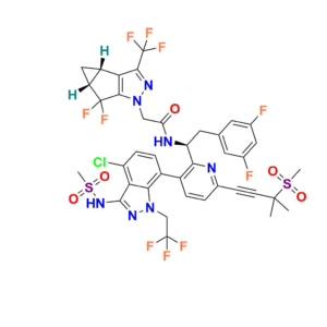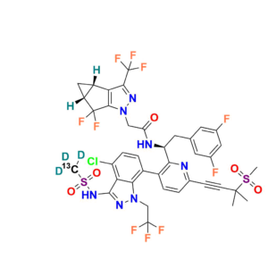 (R)-1 (3‑bromo‑6‑(3‑methyl‑3‑(methylsulfonyl)but‑1‑yn‑1‑yl)pyridin‑2‑yl)-2‑(3,5‑difluorophenyl)ethan-1‑amine, MW ~457.3 g/mol—commonly used to monitor forced‑degradation products and validate stability testing